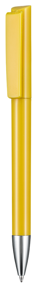 Kugelschreiber mit Drehmechanik und angespritztem Clip. Glänzende Oberflächen und Metallspitze vermitteln Wertigkeit. Gutes Preis-Leistungsverhältnis. Ausgestattet ist dieses Schreibgerät mit einer blau schreibenden Budget-Großraummine.